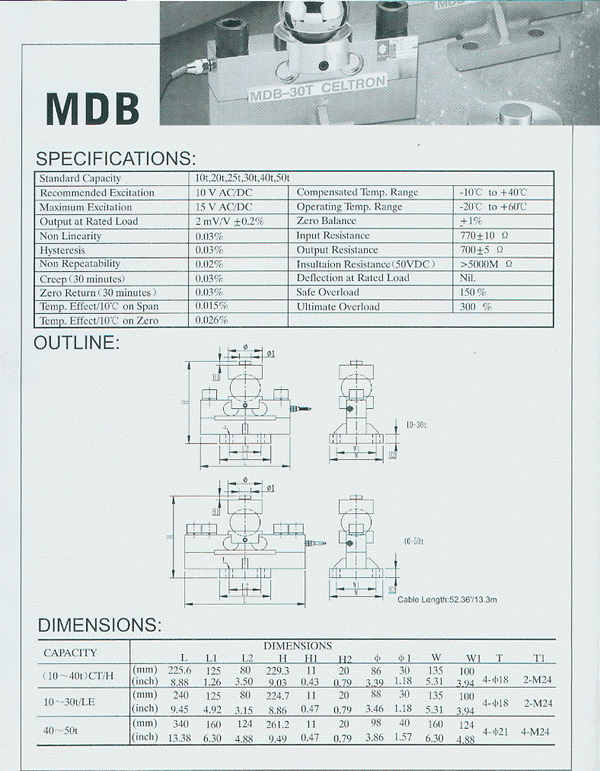美國(guó)Celtron稱重傳感器,稱重傳感器MDB-30t,傳感器MDB-30t,MDB-30t,咨詢熱線:0755-26734156
