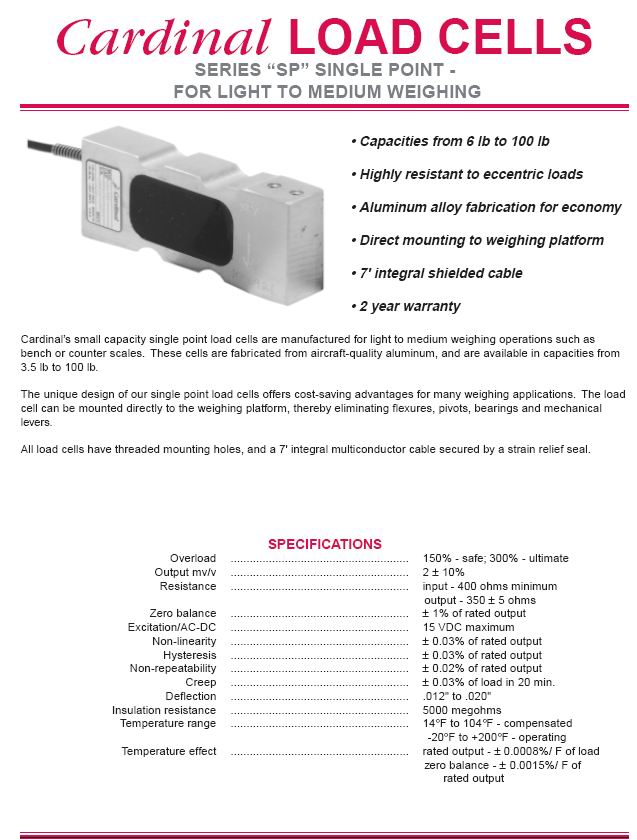 | 產品名稱:Cardinal SP 單點式稱重傳感器(load cells) |