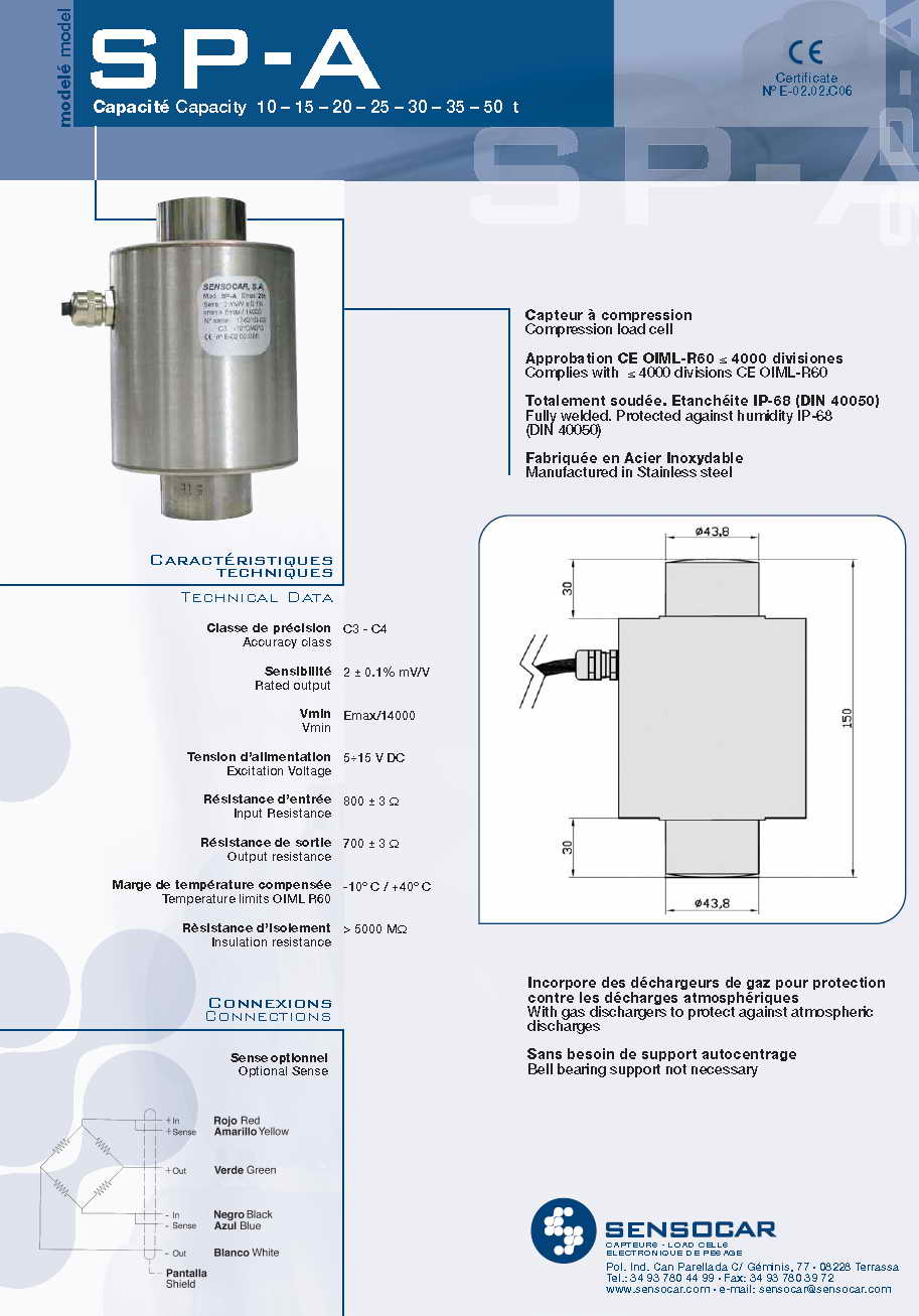 Sensocar SP-A 柱式稱重傳感器(load cells)