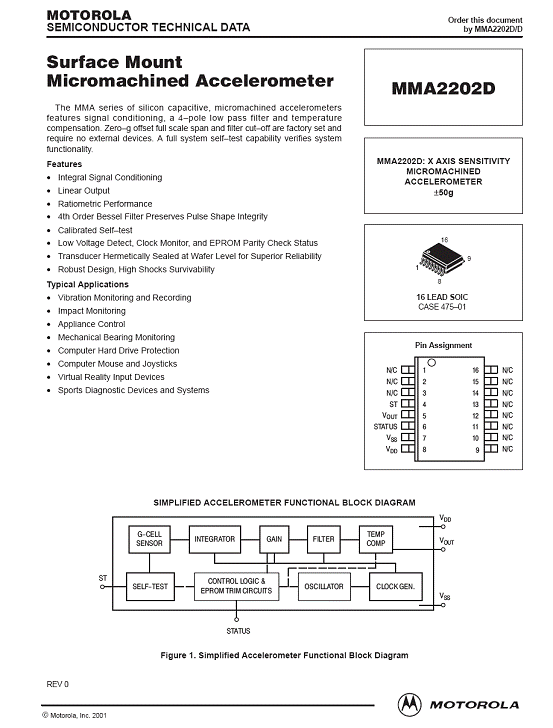 | 產(chǎn)品名稱:MMA2202D 加速度傳感器(Accelerometer) |