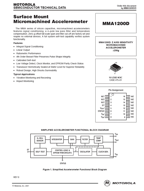 | 產品名稱:MMA1200D 加速度傳感器(accelerometer) |