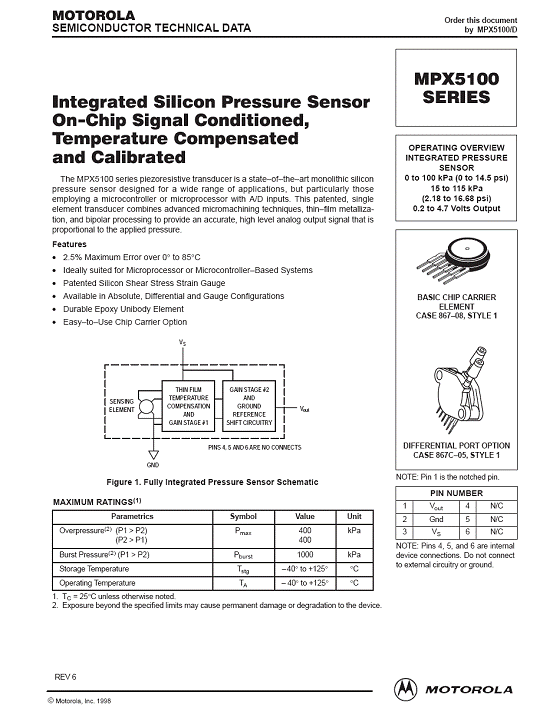 MPX5100 氣壓傳感器(sensor)