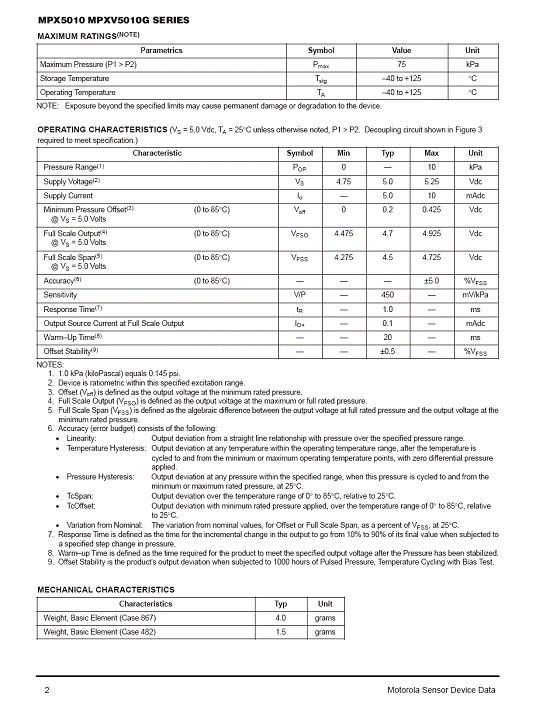 MPX5010 氣壓傳感器(sensor)