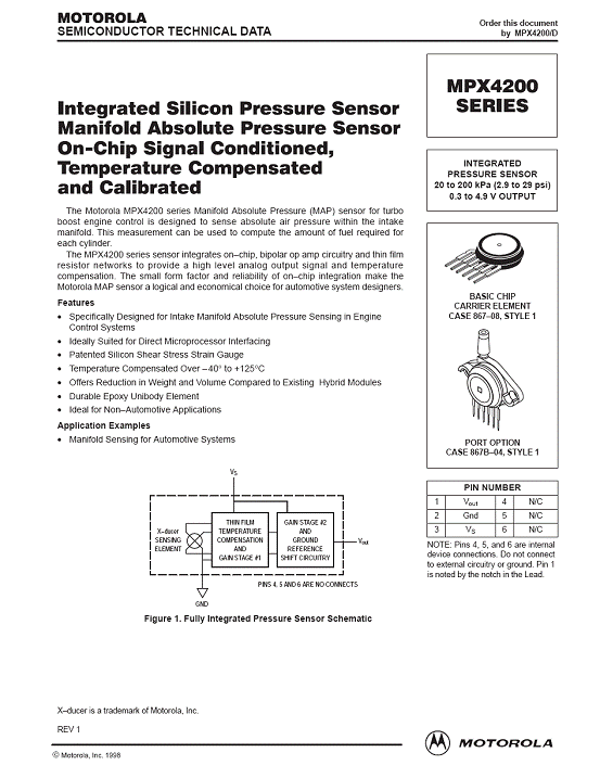 MPX4200 氣壓傳感器(sensor)