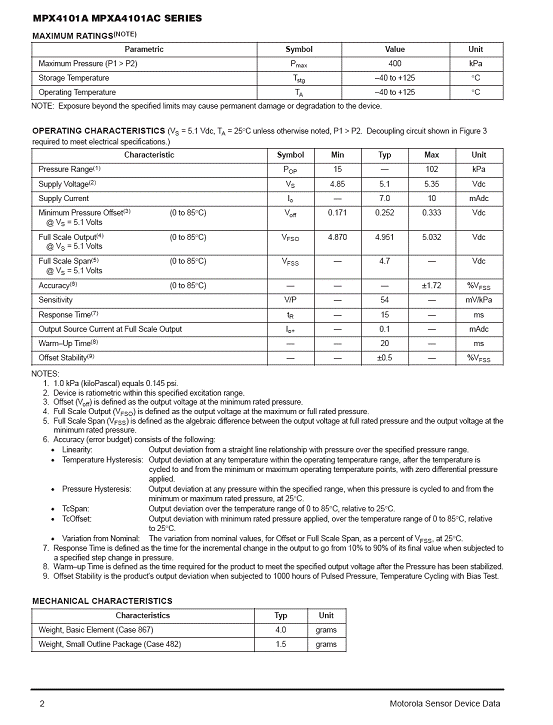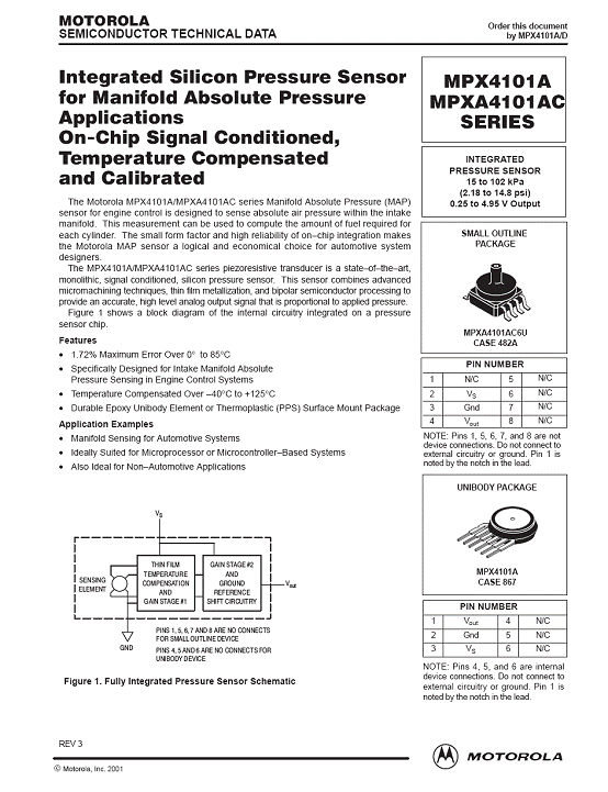 MPX4101A 氣壓傳感器(sensor)