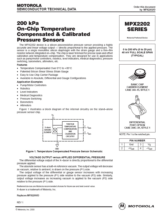 MPX2202 氣壓傳感器(sensor)