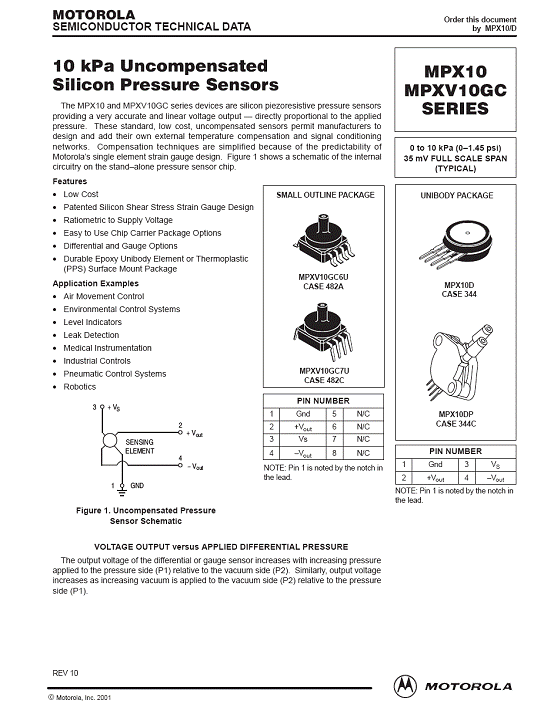 | 產(chǎn)品名稱:MPX10 氣壓傳感器(pressure sensor) |